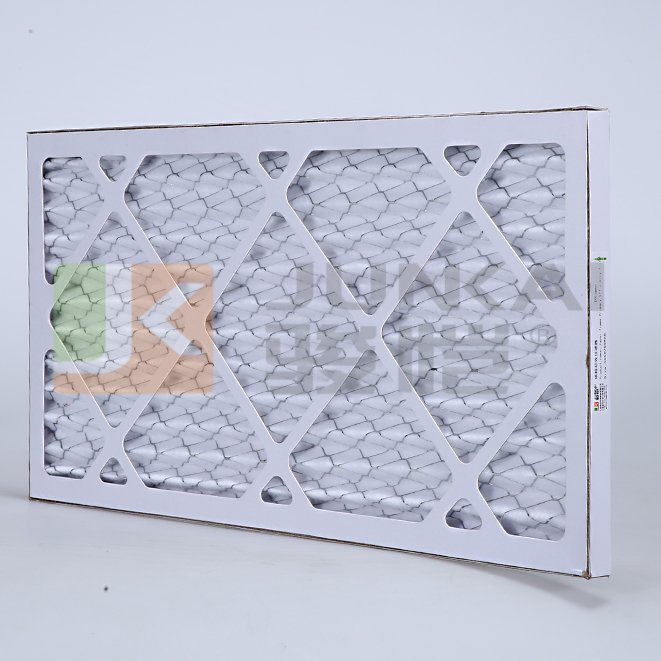 采用阻燃合成纤维滤料,出风面覆金属网支持,强度好,纸外框,防水卡纸外框,实用性强,经济实惠,用于空调通风系统初效过滤。
